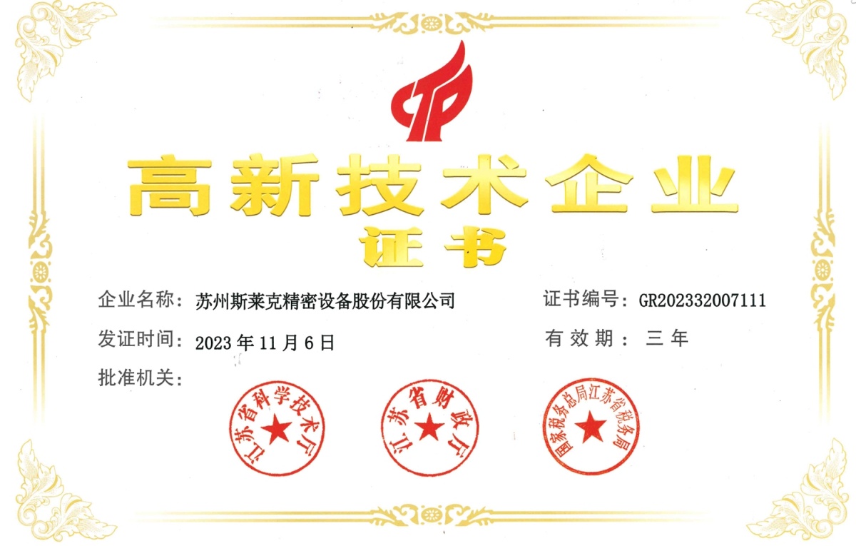 苏州斯莱克精密设备股份有限公司成立于2004年, 2014年1月在深圳证券交易所创业板挂牌上市。公司定位于面向全球市场的高端专用成套设备的设计制造,为金属包装行业客户提供高端装备以及整体解决方案,主要从事成套高速易拉盖、易拉罐生产设备、图像检测等各类系统的研发、设计、生产、装配调试及相关精密模具、零备件的研发、加工制造。现有员工百人以上,下设 11个子公司,涉及智能制造、新能源、检测系统等多个领域;研发人员共108名,其中博士,硕士60多名,研发能力强大,研发成果显著。